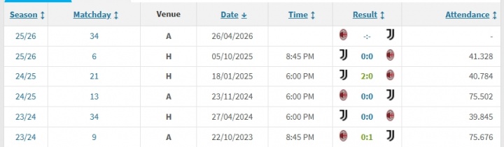字据德国转会市集的数据,尤文邻接5场联赛零封米兰,战绩2胜3平。
