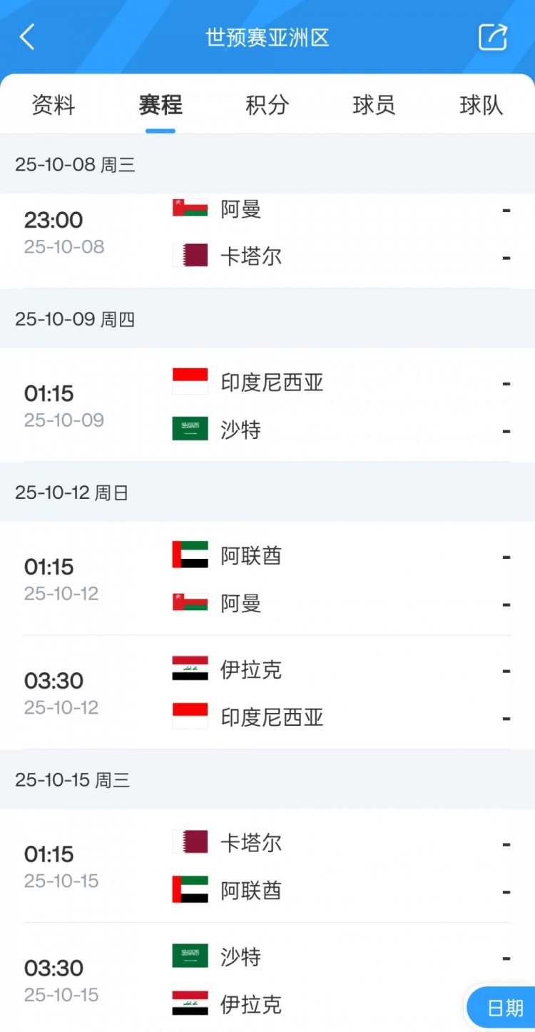 10月8日讯 世初赛亚洲区参加第四阶段,6支球队将在接下来8天争夺2个纵贯限额。而在莫得裸露任何选拔圭臬的情况下,亚足联将第四阶段比赛把持权交给了卡塔尔足协与沙特足协,这让其他参赛球队十分困惑。