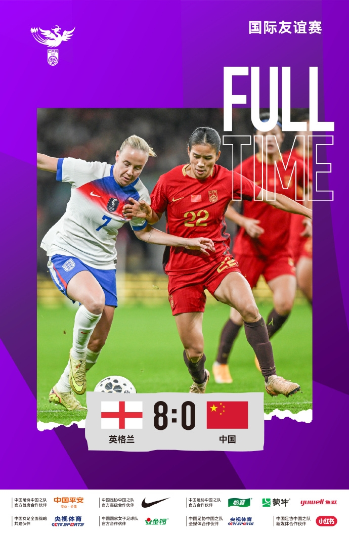 中国女足0比8英格兰女足。