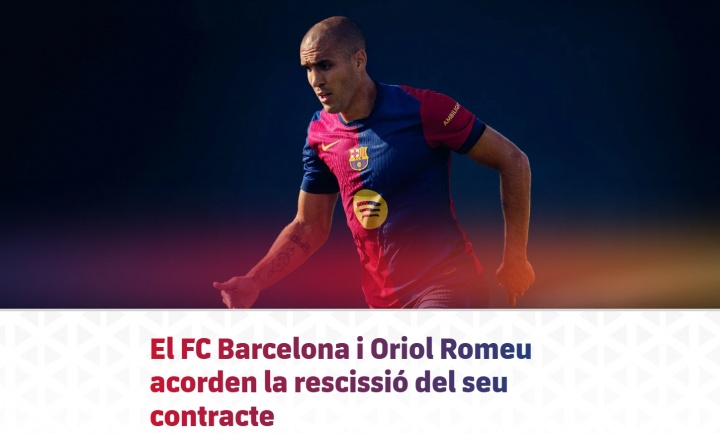 巴塞罗那足球俱乐部与一线队球员奥里奥尔-罗梅乌在转会窗口期内终了左券,停止其与俱乐部的合同。