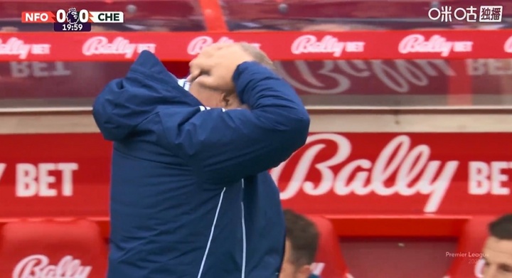 比赛第20分钟,切尔西后防乱成一团,吉布斯-怀特1分钟内错失2次良机。澳波在场边非常黯然。