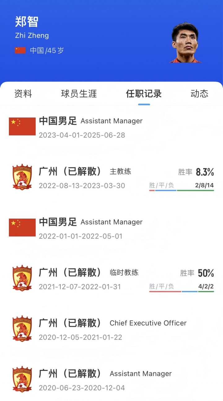 郑智1980年8月20日配置于辽宁省沈阳市,出自辽宁后生队,生活主要司职后腰,曾着力深圳祥瑞(深圳健力宝)、山东鲁能、查尔顿、凯尔特东说念主、广州恒大(广州队),获得的冠军荣誉包括2次亚冠、10次中超、2次足协杯、4次超等杯。