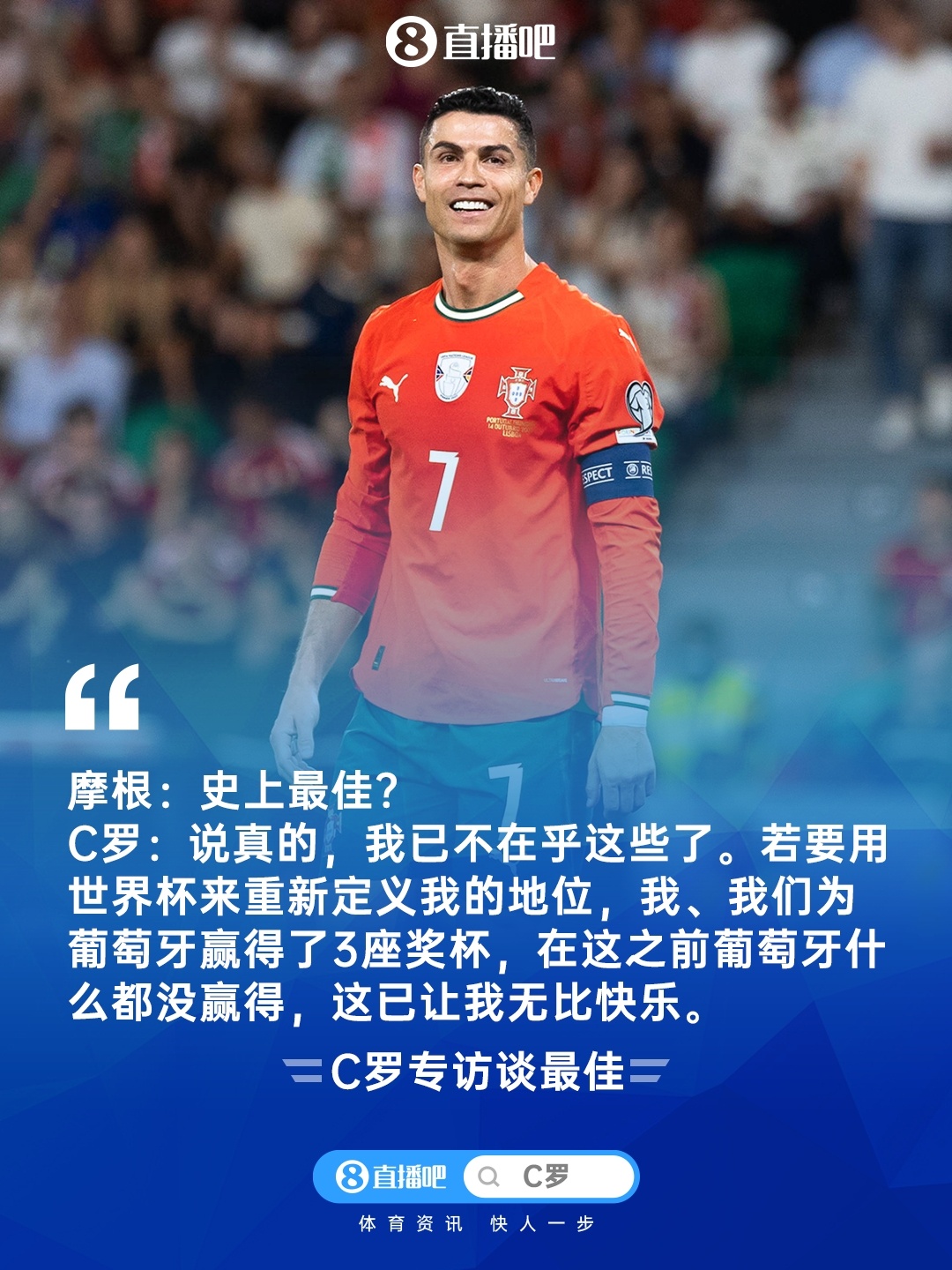 C罗:说的确,我已不在乎这些了。看过太多访谈,目下无论我说什么皆不会让东说念主惊诧,事实自身就能阐述一切。