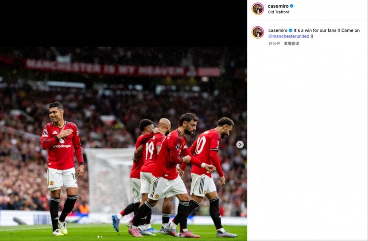 赛后,卡塞米罗更新社媒:这是献给咱们球迷的胜仗!加油!