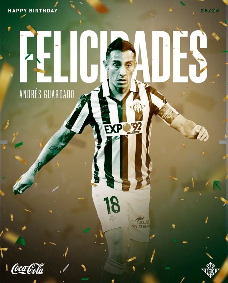 9月28日讯 今天是贝蒂斯名宿瓜尔达多39岁寿辰,球队官推也晒出海报为其奉上寿辰祝愿。