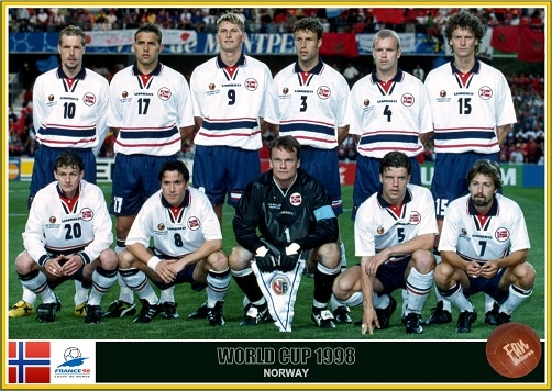1998年寰球杯,挪威阵中有索尔斯克亚(图中20号)