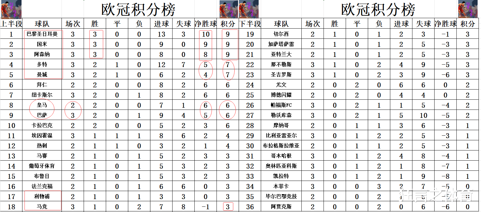 积分榜方面,巴黎,国米和阿森纳链接保持全胜,况兼今天三队还皆是“狂刷”净胜球,巴黎刷了5个净胜球,他们就凭借1个净胜球优势链接力压国米领跑,阿森纳差国米1个净胜球排在第3。巴萨狂胜止住疏忽后,差皇马1个净胜球排在第9,多特,曼城2胜1平保持不败,排在第4,第5。