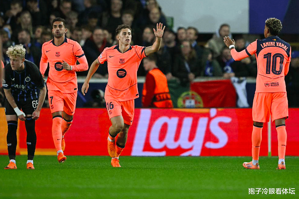 第61分钟,亚马尔打进有目共赏的一球,靠近布鲁日的包夹,亚马尔如穿花蝴蝶一般突入禁区,费尔明脚后跟助攻,亚马尔扳平比分。