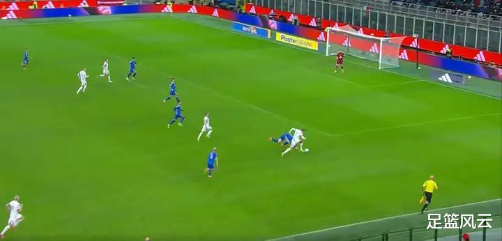 上图这个镜头,可以代表意大利队平时的弱势。面临索尔洛特、努萨还有哈兰德的冲击,意大利的球员对抗很亏空,时时是被敌手撞得前俯后合,体魄硬度、速率频率完全不在一个层次。