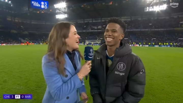直播吧11月26日讯欧冠联赛阶段第5轮,切尔西3-0完胜巴萨。英媒sportbible报说念,亚马逊记者亚历克斯·艾尔乔因用英葡双语对埃斯特旺进行赛后采访而走红,获赞“赛季最好采访”。