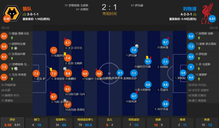 此役利物浦输球的根本就是锋无力,9号位埃基蒂克梦游,左侧翼选手加克波简直就是狼队的右卫士,还离奇错失空门。右侧翼选手萨拉赫打入一球,但利物浦整体攻击战术群拉胯,得势不入球数,最终被绝杀。