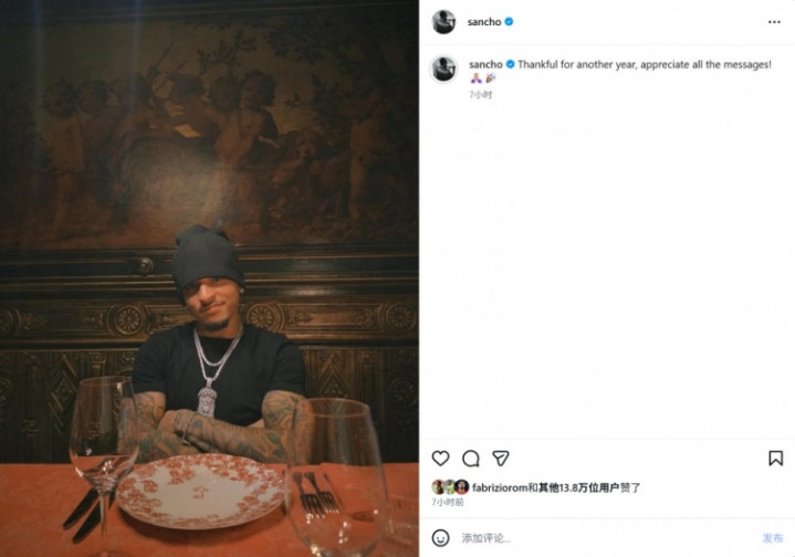 桑乔在社媒写道:“感激又一年,感激所有的祝福”。
