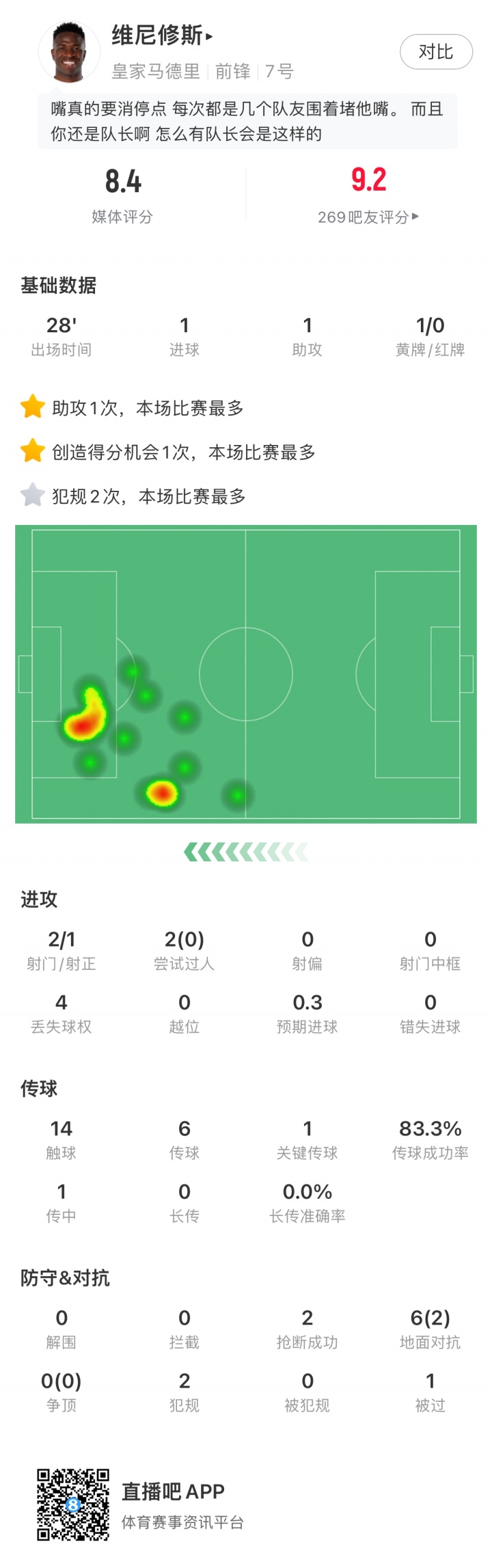 据《马卡报》统计,自2024年10月以来,维尼修斯在皇马客场进行的西甲比赛中未得到任何进球。
