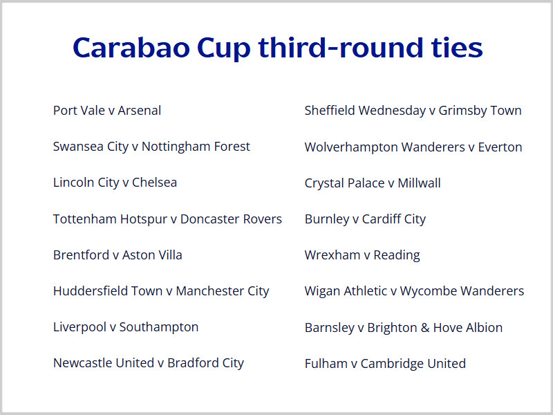 当曼联出局后,联赛杯32强随之一都笃定,立地进行了抽签典礼。英超朱门的运道大都可以,一都遇上初级别的球队,第三圈的16场比赛中,唯有两场是英超球队之间的对决。