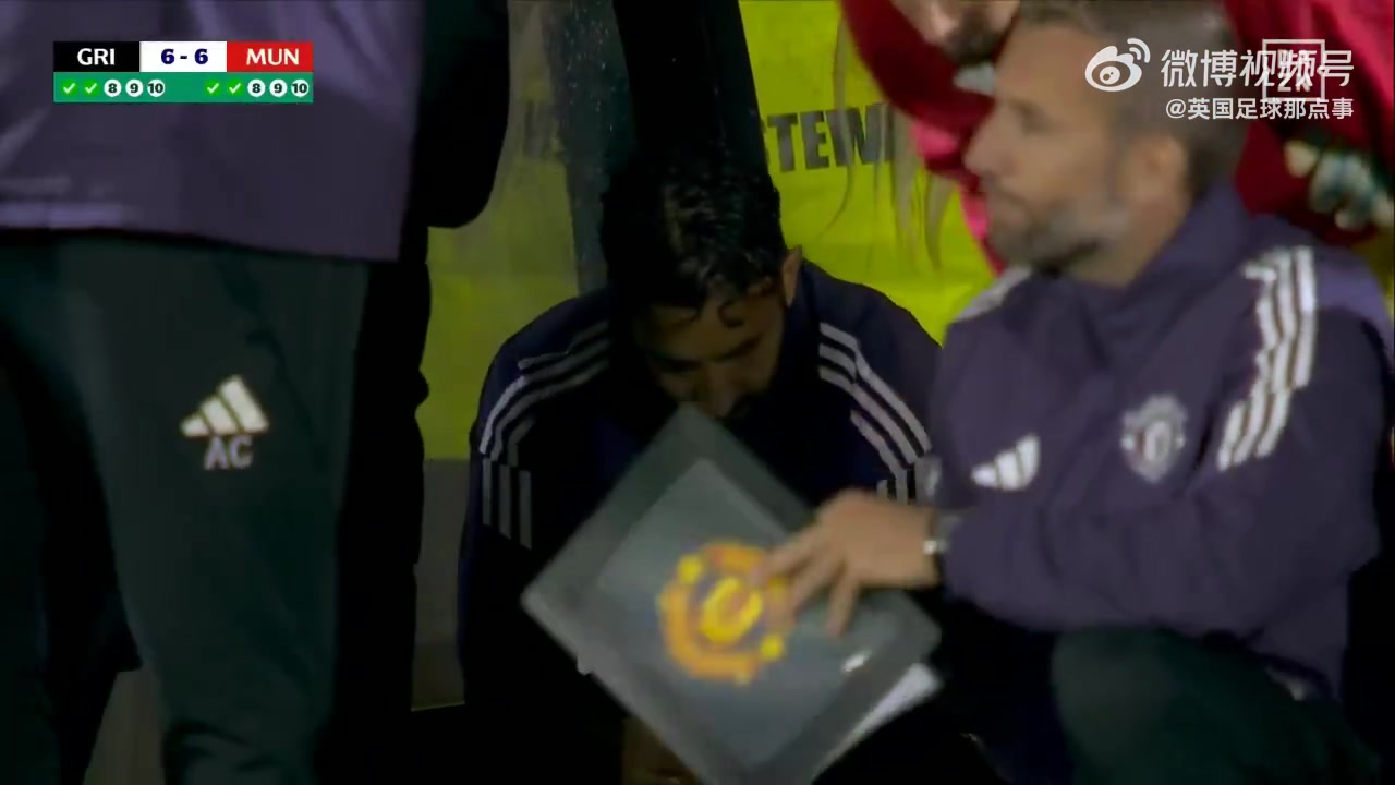 【不念念靠近】曼联与格林斯比的点球大战前,阿莫林莫得出目下场内,助教作念的点球安排。