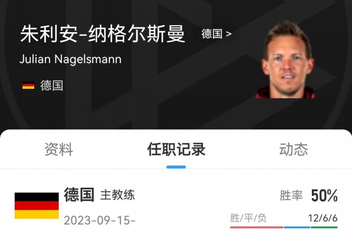 德国队本年1月刚与纳格尔斯曼续约至2028年。他会在26年寰宇杯时陆续带队,再到之后的欧洲杯。