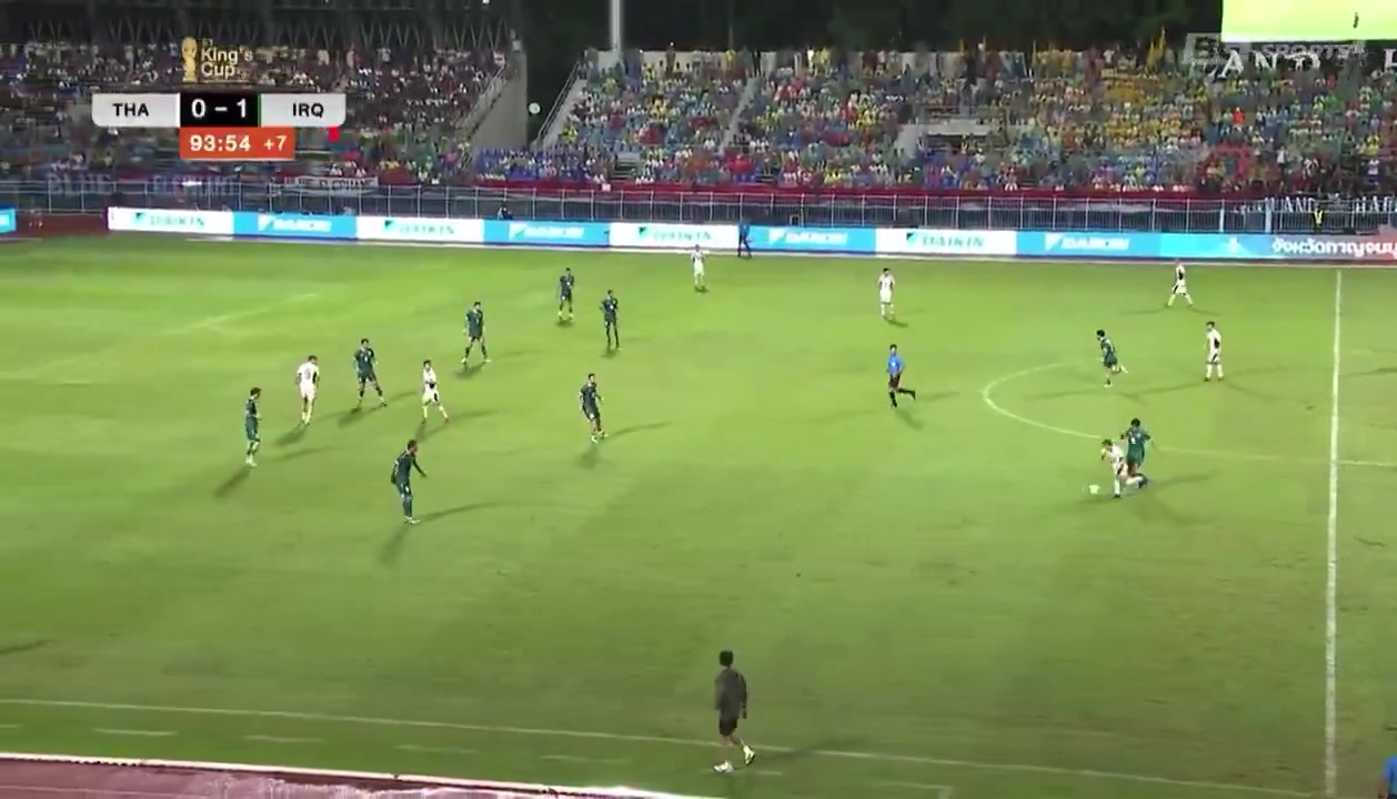 全场比赛补时阶段,伊拉克1-0栽培泰国。此前有“泰国梅西”之称的泰国队球员颂克拉辛中圈带球冲破,被死后的伊拉克十号莫哈纳德-阿里一脚踢在悬空的左腿膝盖处,颂克拉辛速即疼痛倒地并翻腾数圈!